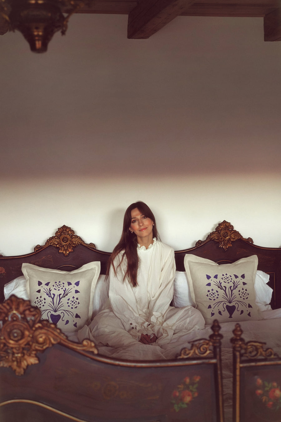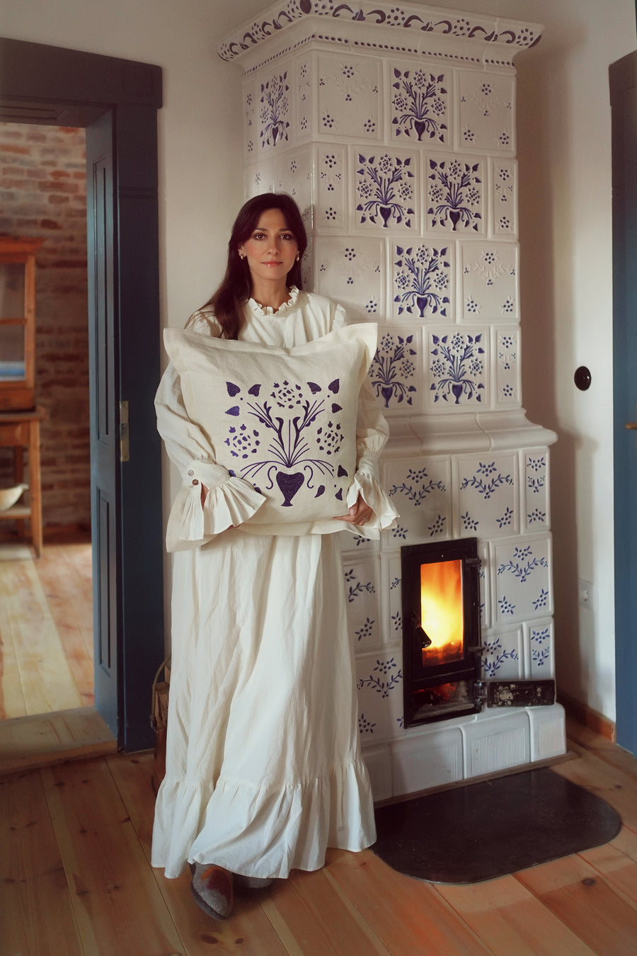 Față de pernă decorativă VAZĂ CU FLORI albă 50x50